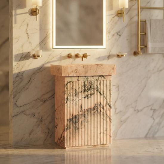 . Pink marble bathroom vanity