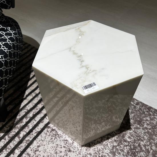 Table d'appoint en marbre blanc avec ventre de poisson naturel Design hexagonal épuré, finition polie brillante, veinures dorées claires uniques. Idéal comme table d'appoint, table de chevet ou table décorative en pierre. Il s'agit d'un marbre blanc haut de gamme classique, fabriqué en Chine. Ses principaux atouts sont sa couleur blanche pure et ses fins veinures dorées. C'est une pierre prisée pour les styles minimalistes et le luxe discret à l'italienne, et son rapport qualité-prix est bien supérieur à celui du marbre blanc pur importé d'Italie.